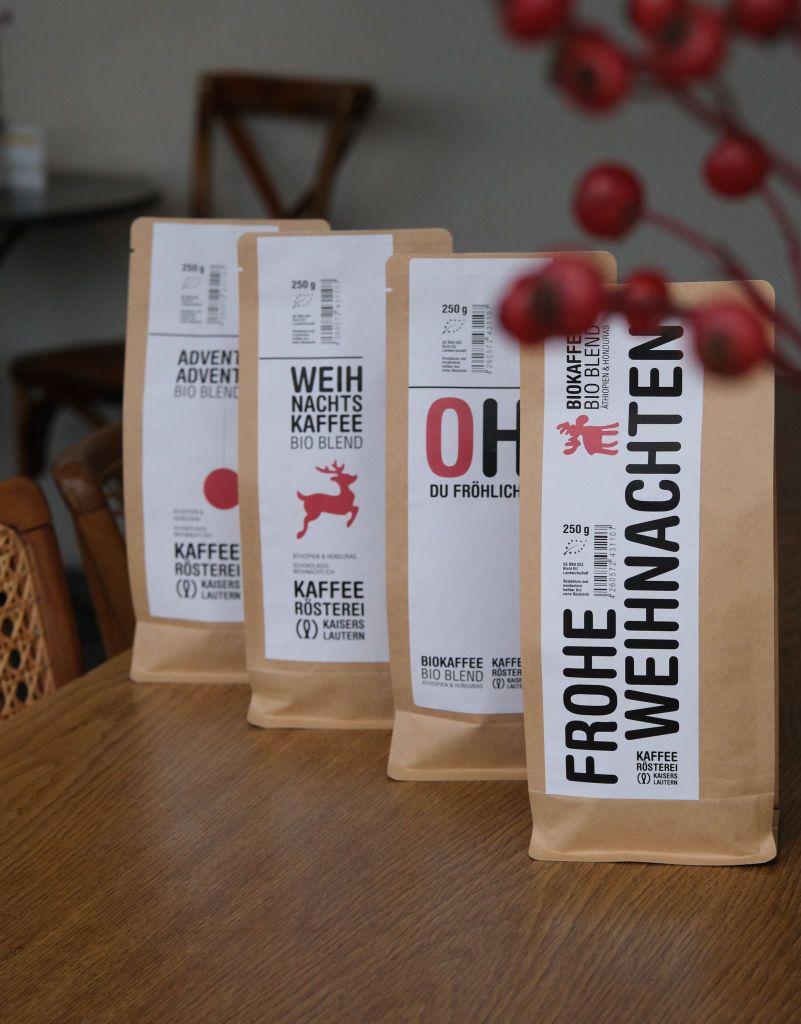 Es weihnachtet sehr und Ihr sucht noch ein Weihnachtsgeschenk für Kaffeeliebhaber? Unser Bio Röstereikaffee schmeckt weihnachtlich schokoladig und kommt in vier Päckchen à 250g. So könnt Ihr Eure vier besten Kaffeefreunde mit köstlichem, frisch gemahlenen Weihnachtskaffee, direkt aus der Rösterei, überraschen. Und wenn Ihr so lange nicht warten wollt – unser Weihnachtskaffee schmeckt auch schon in der Adventszeit 🙂